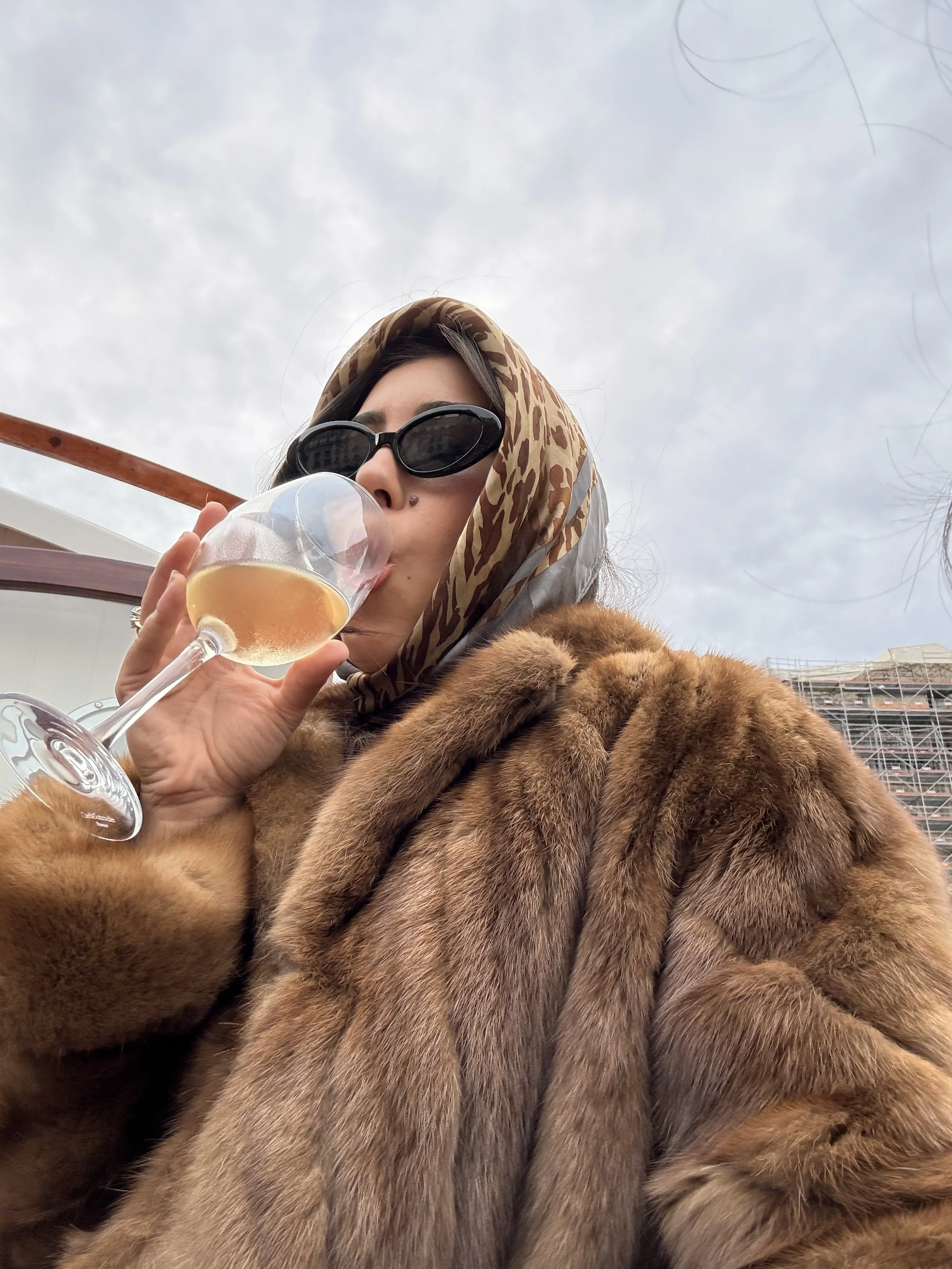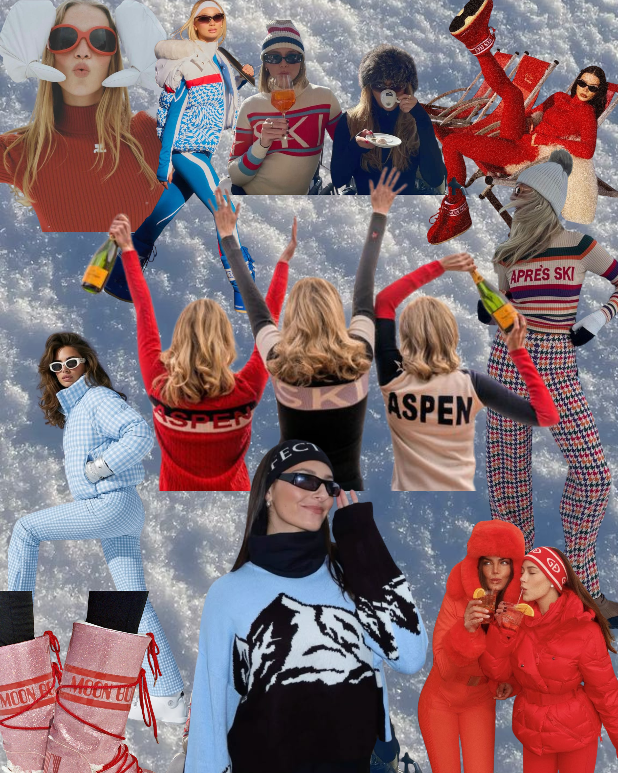 Think retro luxury meets mob-wife getaway: big coats, bigger attitudes, and the kind of confidence that struts into a chalet like she owns the mountain.